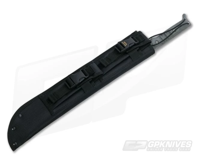 TOPS is known for making some of the toughest knives on the market today, and the new TOPS Machete .230 is no exception. This is one of the best machetes on the open market, featuring a dependable 1095 carbon steel blade sandwiched between classic TOPS black linen micarta scales with red liners. Since no one wants an 1/8″ thick blade to get away from them, the folks at TOPS wisely incorporated a bungee cord and some deep grooves in the handle to keep the knife firmly in your hand. This package comes complete with a custom designed ballistic nylon sheath, incorporating two pockets so you can keep your favorite accessories close by.
