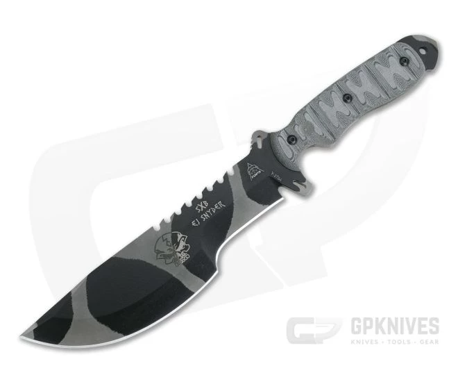 The TOPS Skullcrusher’s Xtreme Blade, or SXB for short, was designed by the well-known survivalist EJ Snyder. EJ is best known for his three appearances on the popular Discovery Channel TV series, Naked and Afraid, but his list of previous accomplishments is vast (to say the least). While in recent years Snyder has focused on survival with an emphasis on military and self-reliance, his interest was sparked during his 25 year stint serving in the US Army where he was an Army Sergeant Major (E-9) and decorated combat veteran of the Gulf War and Operation Iraqi Freedom. Nicknamed the “Skullcrusher” during this time, EJ was described as ready and willing to lead the mission… any mission. TOPS edged weapons history combined with EJ’s extensive study and utilization of military and survival skills makes the SXB a true beast of a survival knife. This version comes with TOPS’ Camouflage blade finish.